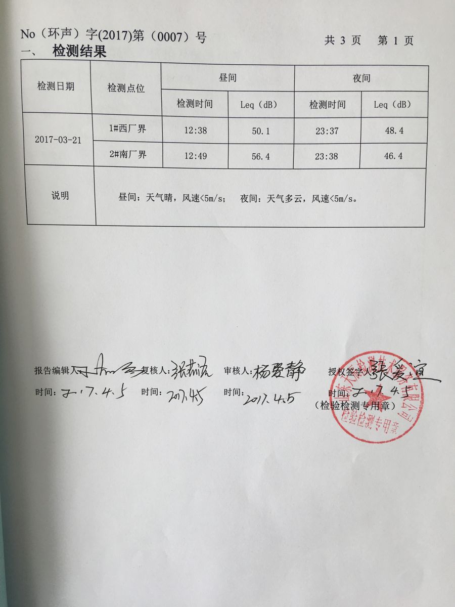 廠區(qū)噪聲檢測(cè)結(jié)果